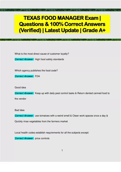 Download Texas Food Manager Exam Answers PDF Reading Free PDF